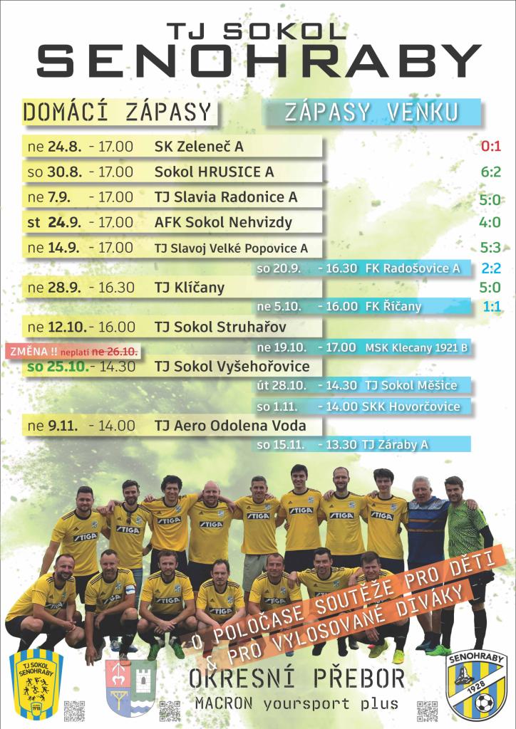 Okresní přebor v soutěži Macron yoursport plus se koná v několika termínech s domácími a venkovními zápasy. Srdečně zveme všechny fanoušky fotbalu, aby nás přišli podpořit.