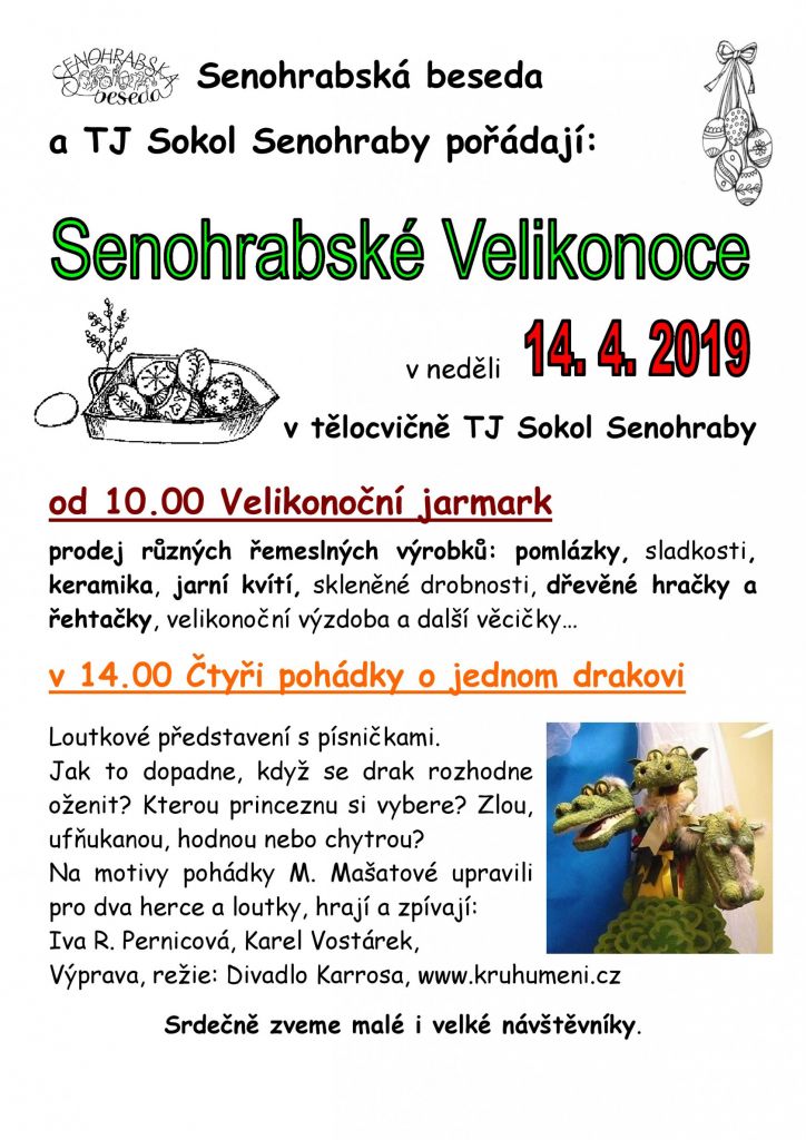 velikonoce 2019 Zveme Vás tímto 14.4. od 10.00 na Velikonoční Jarmark a od 14.00 na "Čtyři pohádky o jednom drakovy".